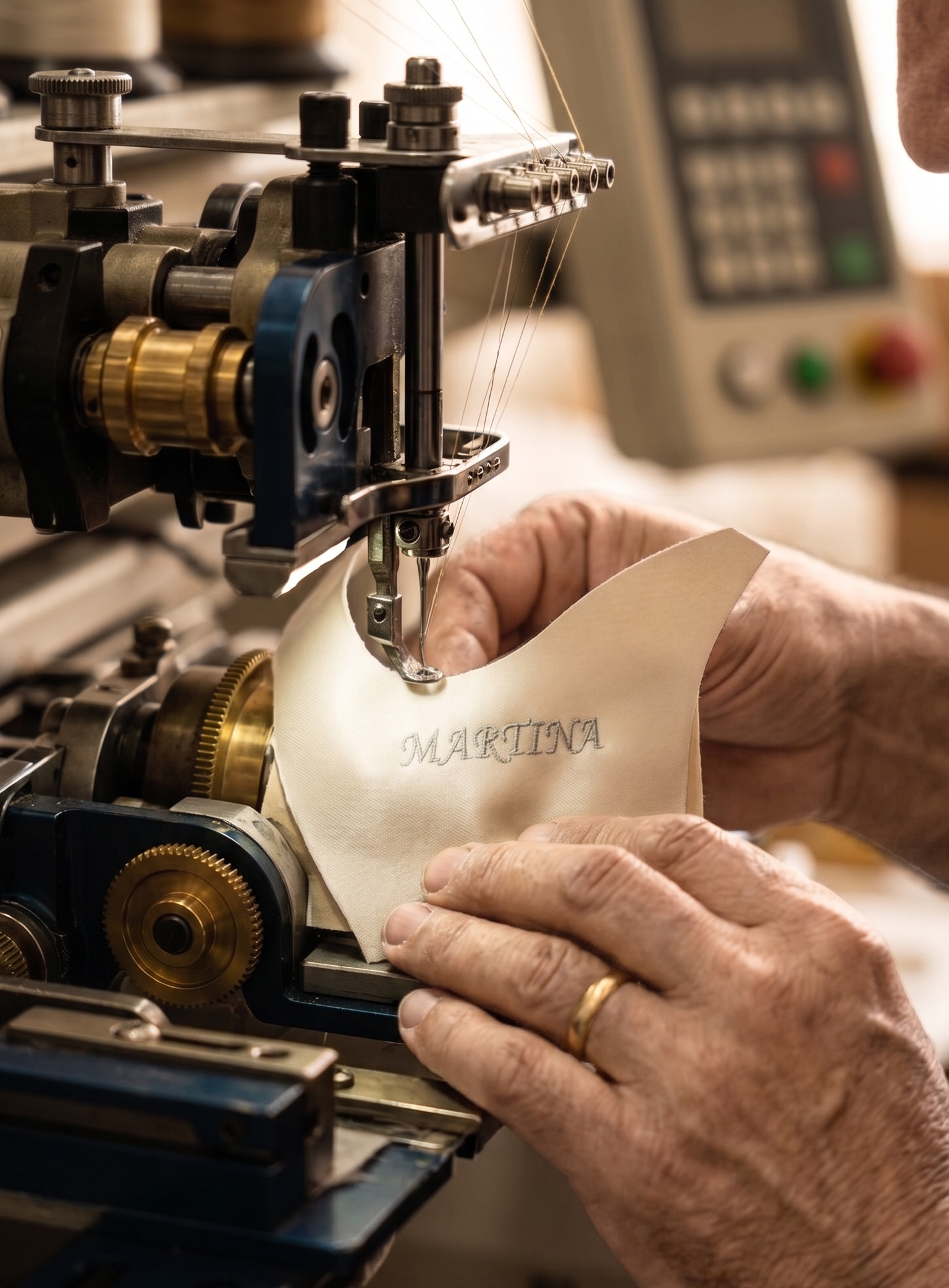Ogni ricamo nasce nel nostro laboratorio a Castellana Grotte, realizzato con le nostre macchine da ricamo e disegnato su misura per te. Puoi scegliere un motivo che racconti una parte della tua storia, le tue iniziali, un piccolo simbolo o un dettaglio ispirato al tuo abito. Ogni punto viene studiato con cura, perché il ricamo che porterai con te sia davvero soltanto tuo.